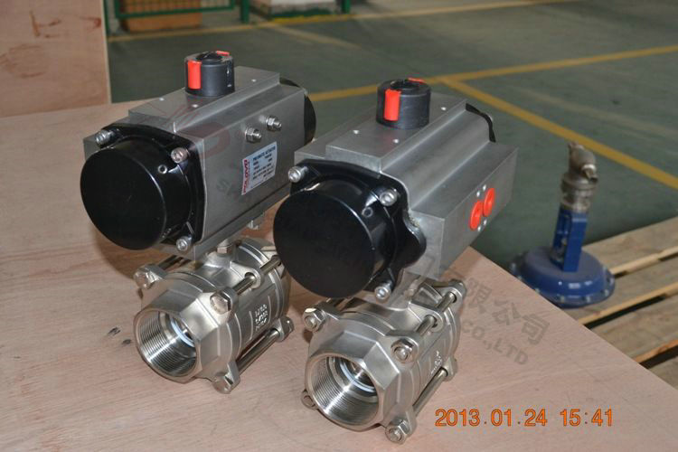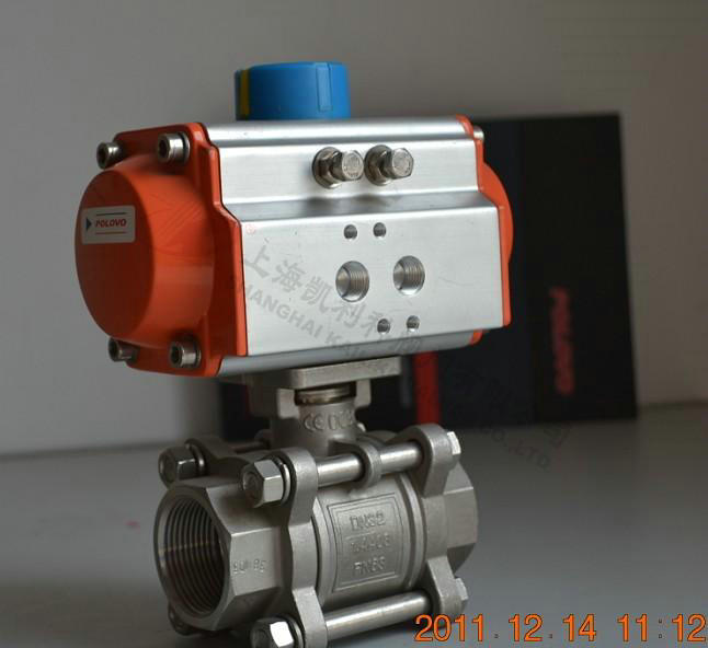 1、气动三片式球阀由仿意大利AT气动执行机构和Q11F球阀组成。