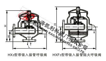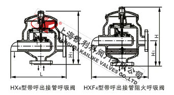 HX4、HXF4带接管阻火呼吸阀是固定在储罐顶上的通风装置,用来维持储罐气压平衡,以保证罐内压力的正常状态,防止罐内超压或超真空室储罐遭受损坏,也可减少罐内液体挥发损耗。是储罐不可缺少的安全设施。