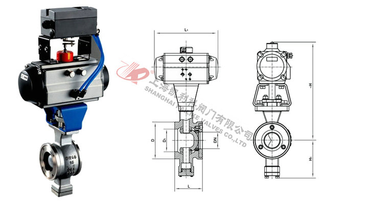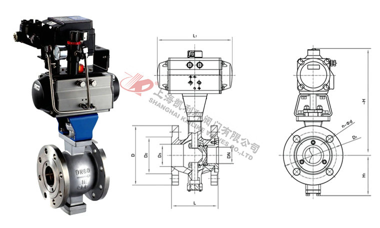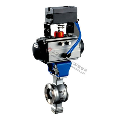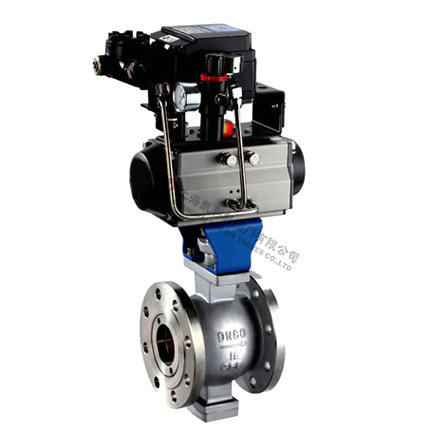 气动V型球阀是球阀的一种,它的关闭件是半球体上开有V字型开口,V型开口具有锋利的刃口,在球体回转过程中,关闭件之间有擦拭作用,对介质具有强有力的切断力,球体的V型开口与阀座流道形成一个扇形区域,在回转过程中可改变流道截面积,形成对介质的精确调节,它是一种角回转的调节阀,其密封性能与普通球阀相同,使它同时具备调节和开关两种功能,与气动或电动执行器配套,广泛使用于工业过程自控系统中。